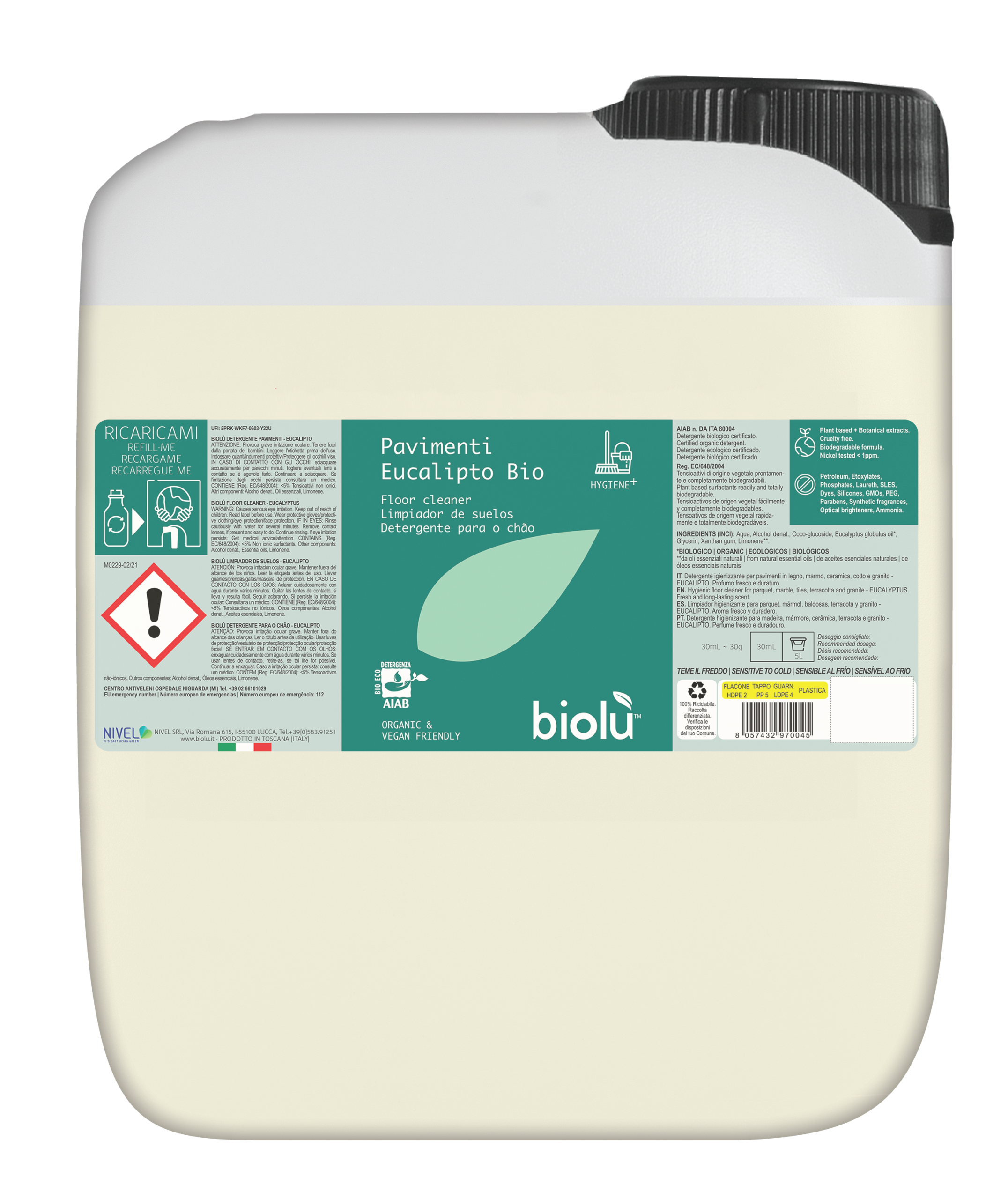 Un detergent delicat, non-agresiv, cu ulei esential de eucalipt din agricultura ecologica. Lasa un miros placut, si este potrivit pentru toate tipurile de pardoseala: ceramica, teracota, parchet, parchet laminat, linoleu, marmura, granit.