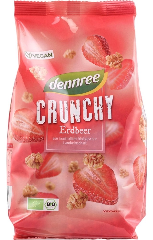 Ingrediente: fulgi de OVAZ integral* 66%, zahar brut din trestie*, ulei de floarea soarelui*, nuca de cocos deshidratata* 7%, sirop de orez* 3.4%, capsuni liofilizate* 2%, orez extrudat* 1.7% (faina de orez*, faina de malt din ORZ*, sare de mare), sare de mare.