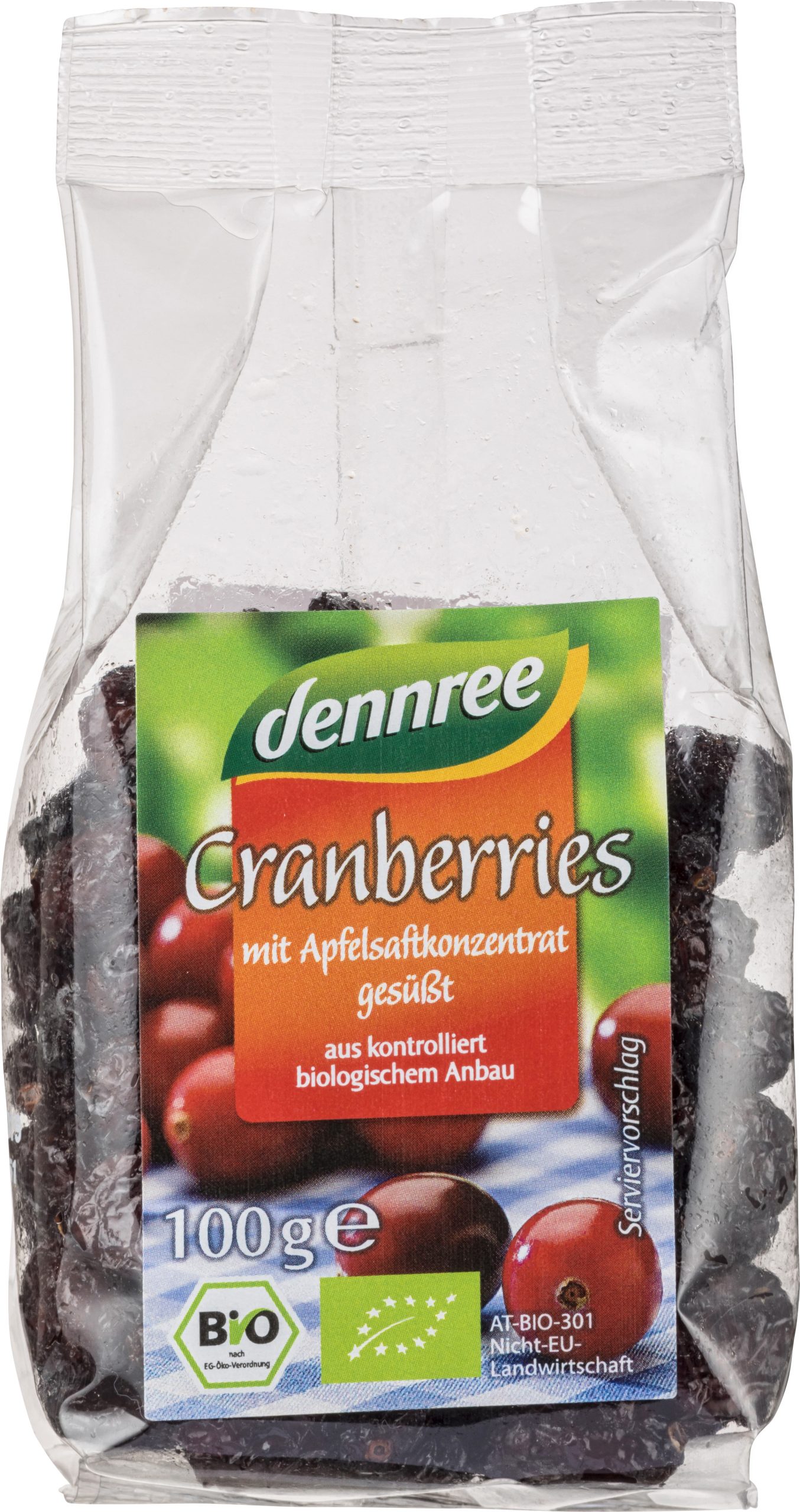 Merisoare bio 100g Dennree indulcite cu suc de mere