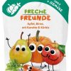 Ingrediente: fulgi de SPELTA* (22%), suc de mere concentrat*, faina integrala de OVAZ* (14%), bucati de pere uscate*, ulei de floarea soarelui*, suc de mango concentrat* (6%), fulgi de OVAZ* (5%), banane uscate*, suc de portocale concentrat* (3.5%), napolitana* (amidon din cartof*, ulei de floarea soarelui*). Nimic altceva.