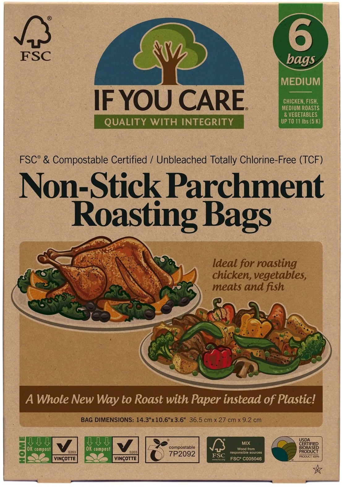 Aceste pungi nealbite, antiaderente, de calitate premium, certificate FSC®, creeaza un mod nou-nout de a praji pui, peste si multe altele cu hartie rezistenta cu grasime nealbita, fara clor, in loc de plastic sau aluminiu. Acestea sigileaza sucurile pentru a crea carne delicioasa, frageda si umeda, care cade literalmente de pe os. Sunt sigure pentru cuptor pana la 220 de grade Celsius si sunt 100% naturale, fara gluten si alergeni.
