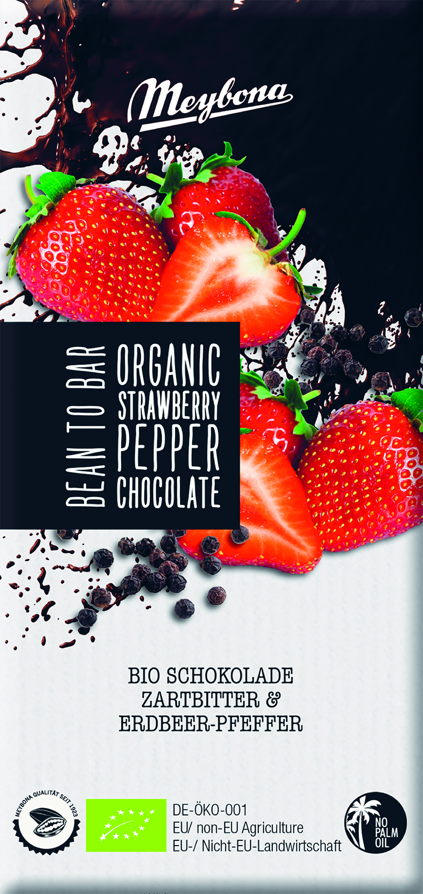 Ciocolata neagra cu capsuni si piper negru, bio, 100g, Meybona