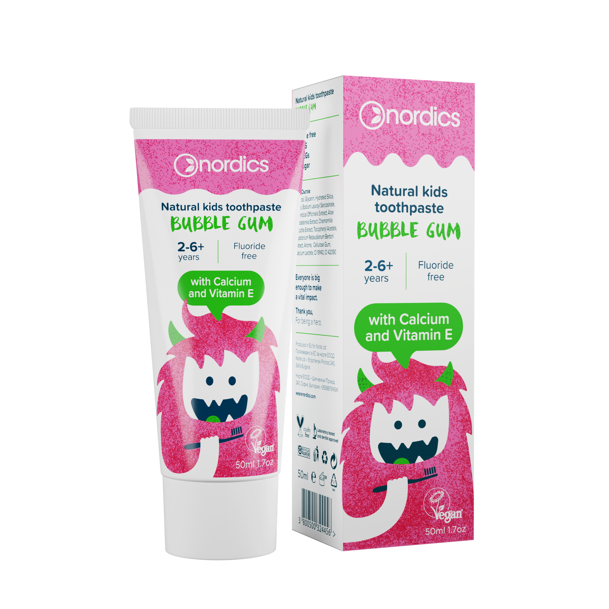 Pasta de dinti naturala, fara fluor, fara SLS, fara conservanti, certificata vegan. Formula speciala pentru copii, cu aroma de bubble gum. Se poate folosi de catre copii incepand cu varsta de 2 ani.
