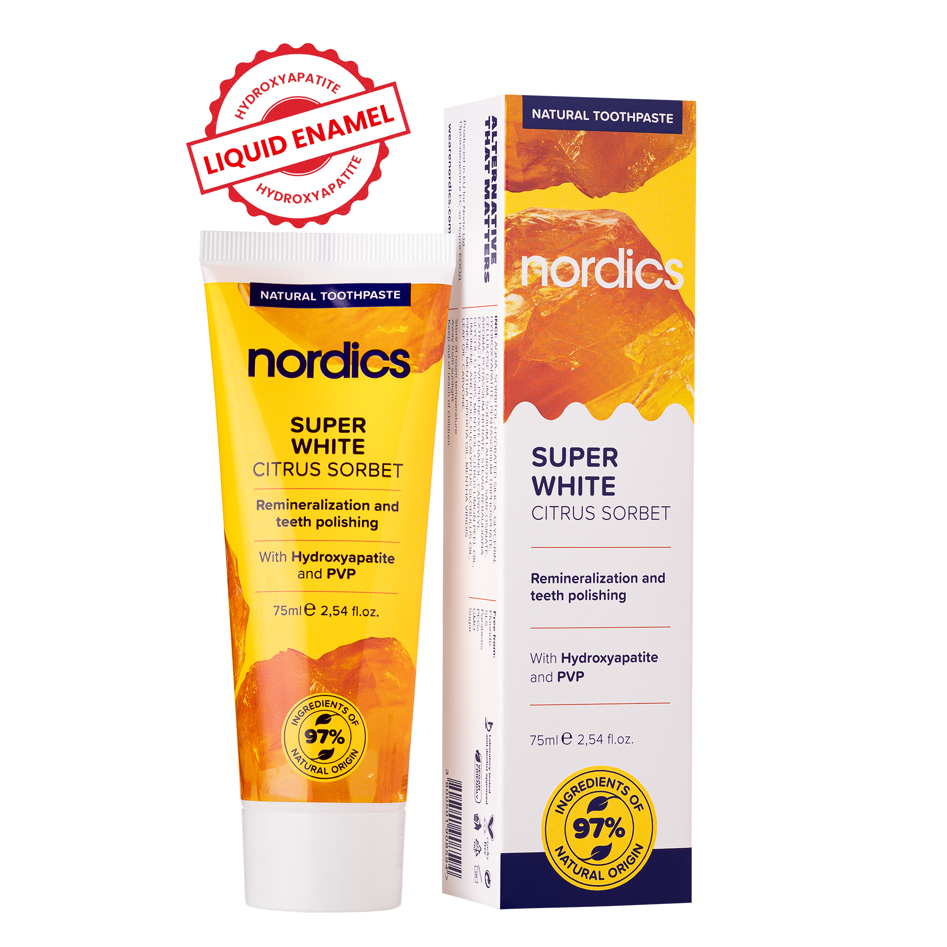 Pasta de dinti pentru albire cu citrice are o formula care combina remineralizarea naturala cu unul dintre cele mai puternice ingrediente cunoscute pentru a ajuta la mentinerea dintilor albi. Pasta de dinti Nordics a fost dezvoltat pentru persoanele care doresc sa restabileasca rezistenta naturala a dintilor, mentinand in acelasi timp si culoarea alba.