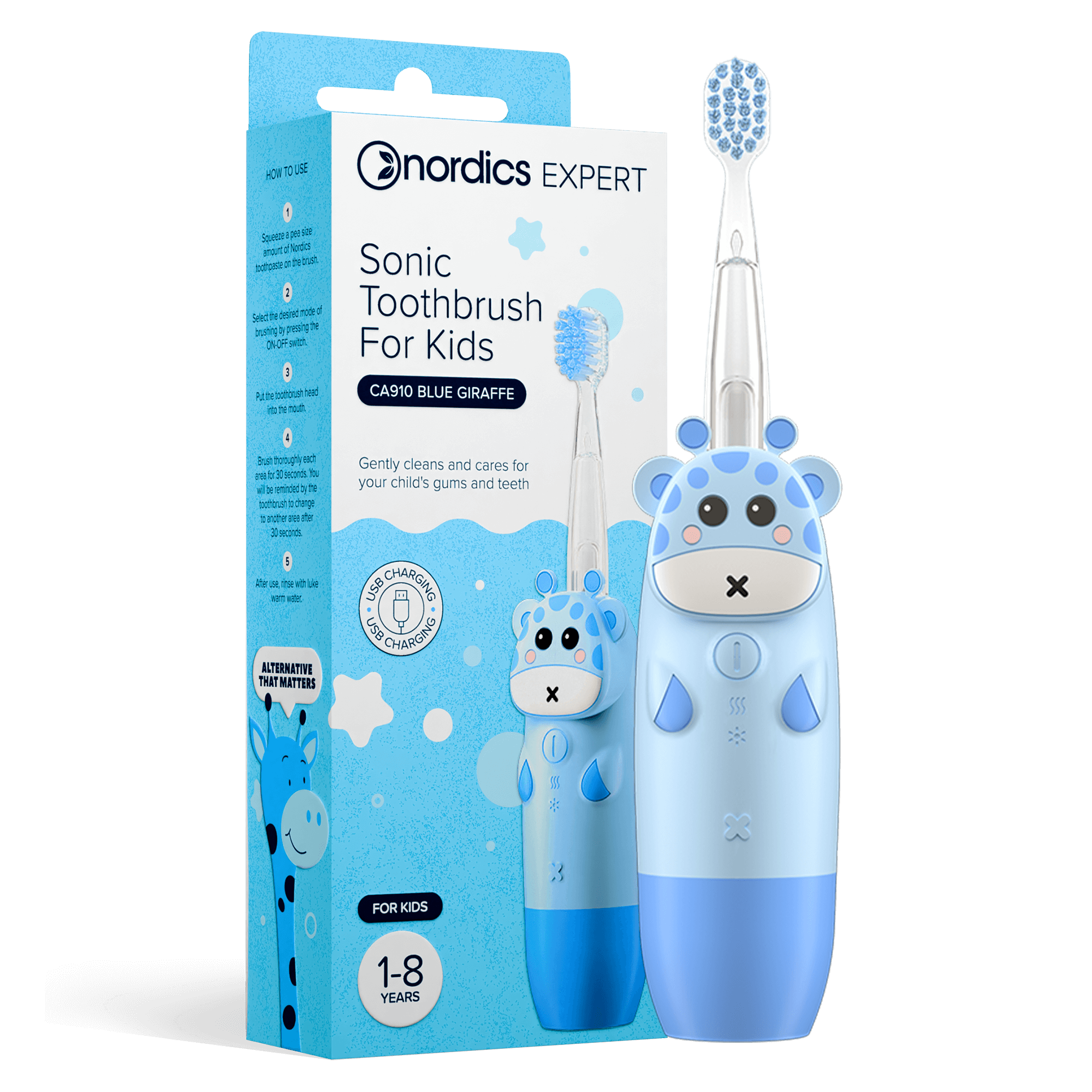 Periuta de dinti electrica pentru copii 1-8 ani – albastra, Nordics