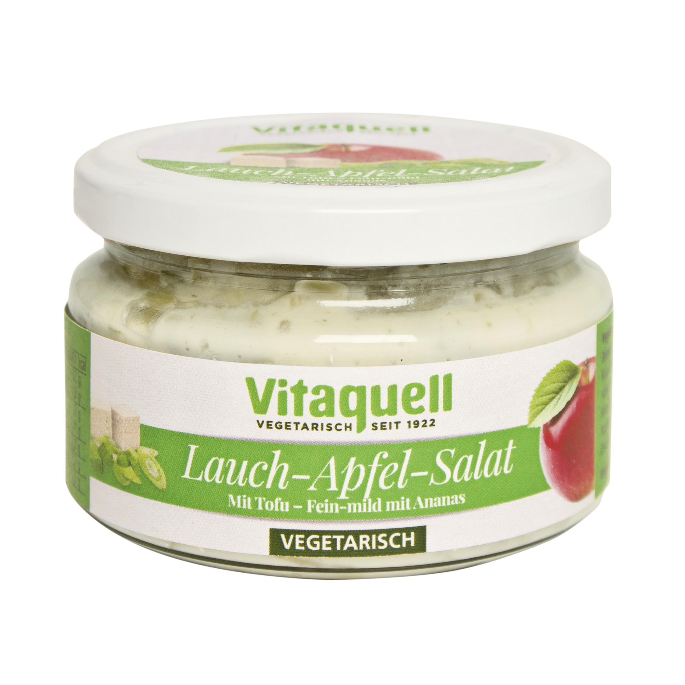 Salata cu tofu, praz si mere Vitaquell este picanta si fructata, o delicatesa usoara, de vara. Datorita ingredientelor de inalta calitate, cum ar fi uleiul de rapita si tofu, aceasta salata este deosebit de usor de digerat. Procesul de productie este complet fara conservanti.