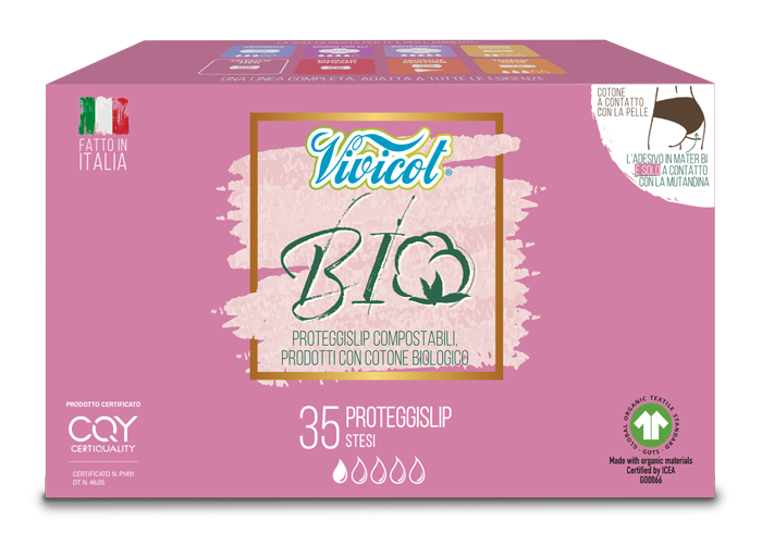 Linia Vivicot Bio include o gama variata de produse hipoalergenice pentru igiena intima. Produsele sunt realizate in intregime (interior + exterior) din bumbac certificat GOTS (Global Organic Textile Standard).